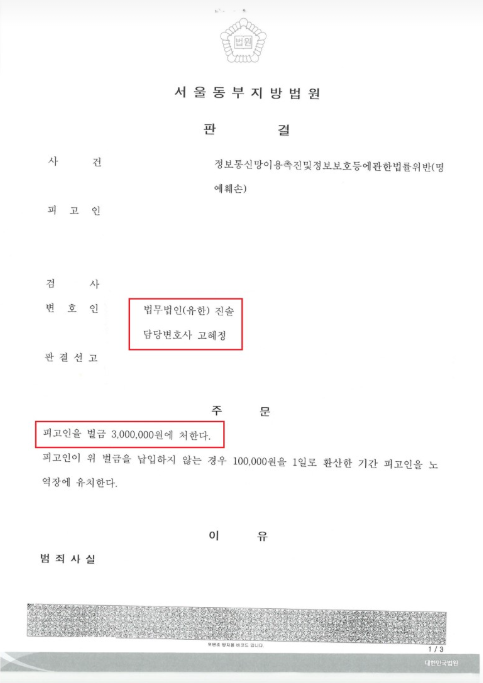 의뢰인은 인터넷 카페 상 타인의 명예를 훼손하는 댓글을 게시하여 정보통신망이용촉진및정보보호등에관한법률위반(명예훼손)죄로 500만 원의 약식명령을 받은 상태였습니다.